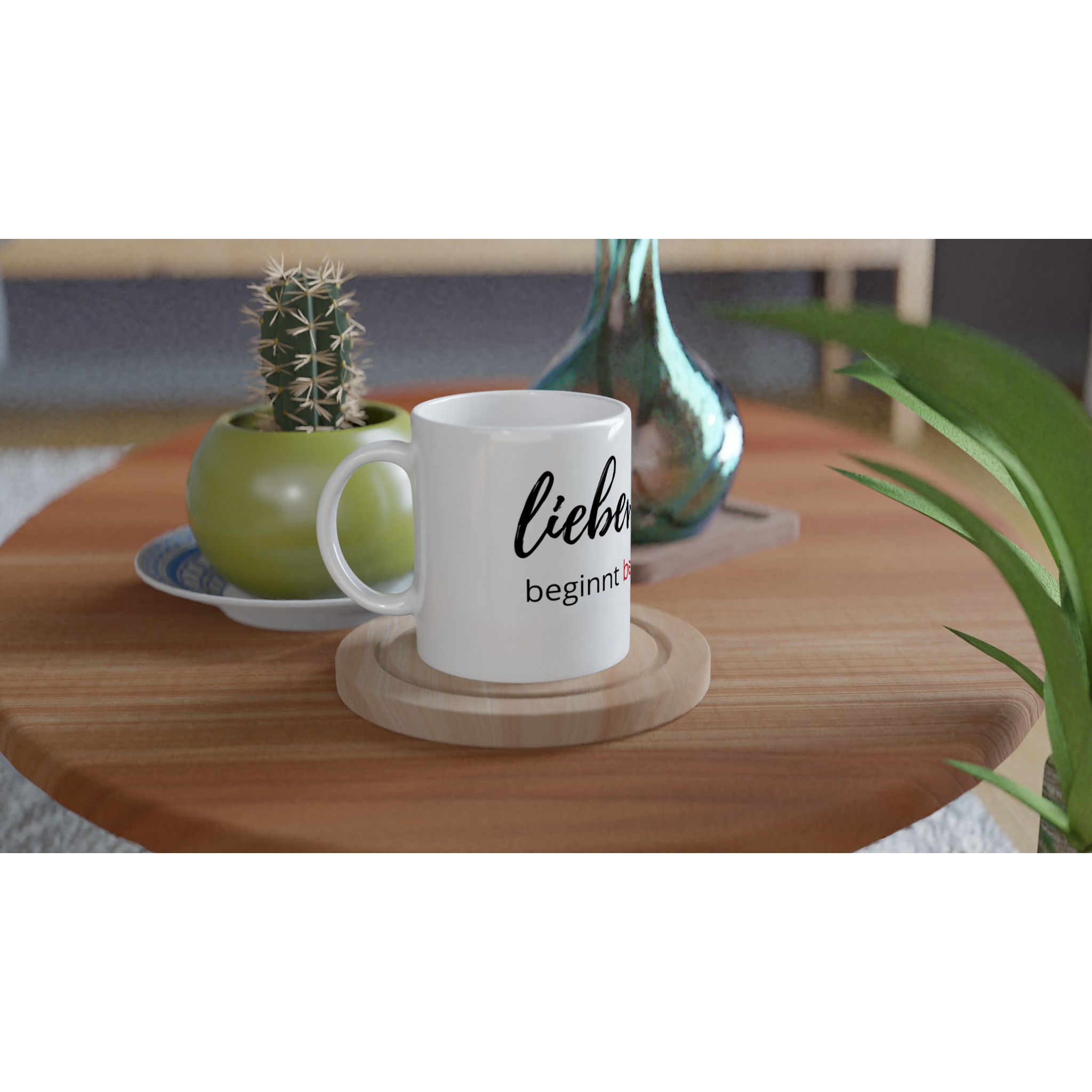 Diese schöne Keramiktasse ist perfekt für jeden Anlass des Tages. Ihr Morgenkaffee, eine heiße Schokolade oder jedes andere heiße Getränk, das Sie genießen. Die Tasse ist glänzend weiß mit farbigem Rand, Innenseite und Henkel. Die Aufdrucke kommen wunderschön und lebendig zur Geltung. Der Aufdruck behält seine Qualität und seinen Glanz, wenn er sowohl in der Mikrowelle als auch in der Spülmaschine verwendet wird.